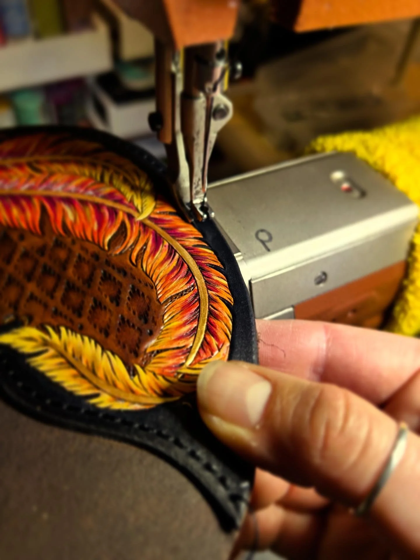Leather tooling is an artform that combines the use of vegetable tanned leather, water, modeling tools, stamps, punches and knives to create beautiful designs in an embossed-like manner. Each dimple and texture seen, is made with great intention and precision.